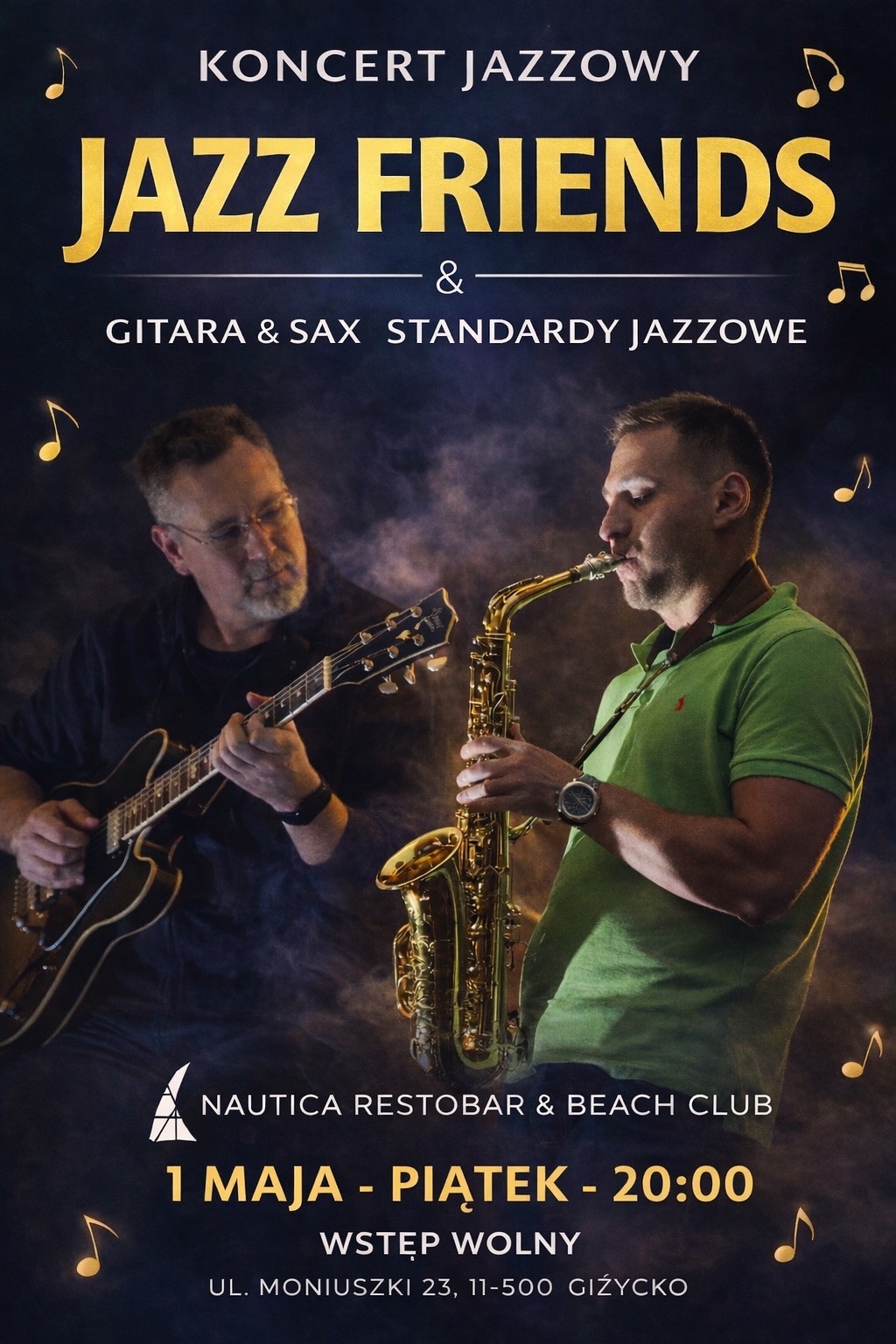 Na scenie JAZZ FRIENDS – gitara & sax i klimatyczne standardy jazzowe, które idealnie wchodzą do zachodu słońca nad jeziorem 🌅