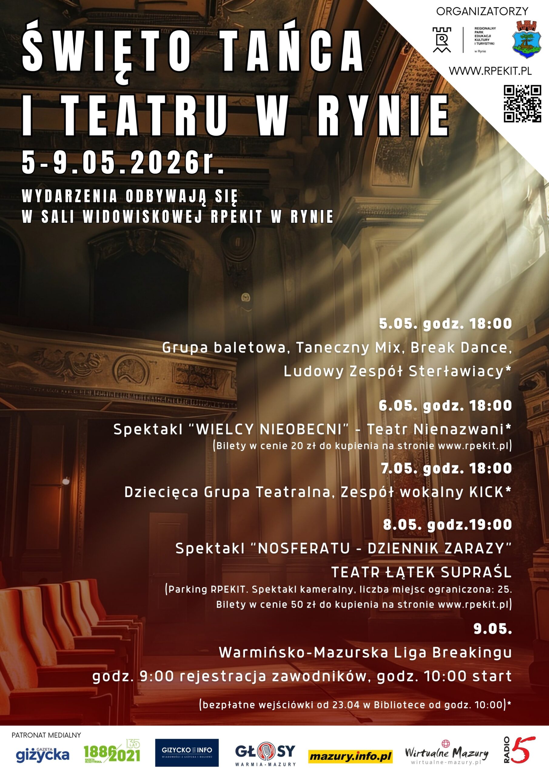 🎭💃 ŚWIĘTO TAŃCA I TEATRU w Miasto Ryn🕺🎶 Serdecznie zapraszamy na wydarzenie pełne emocji, pasji i artystycznych wrażeń! ✨